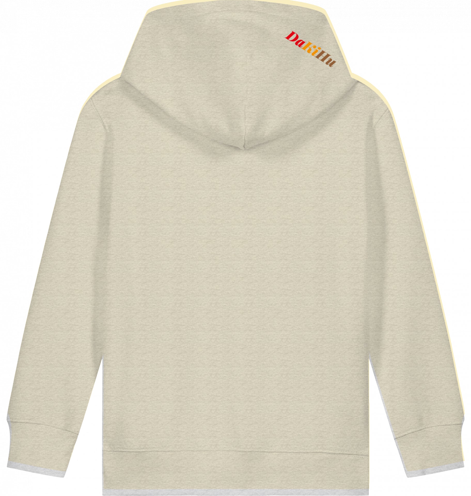 Das Iconic Kinder-Hoodie-Sweatshirt / Set-In Ärmel / Doppelt gefütterte Kapuze aus gleichem Material / Nackenband innen aus Single-Jersey / halbmondförmiger Einsatz aus gleichem Material im Nackenbereich mit 3-mm-Doppelnaht / Einfache Steppnaht am Halsausschnittrand / 1x1-Ripp an Ärmel- und Saumbund / 2-Nadel-Steppnaht mittig auf der Naht am Saum, Bündchen und Armausschnitt / Kängurutasche mit 3-mm-Steppnaht / Hochwertiger DTF-Druck / ohne Schnüre in der Kapuze!